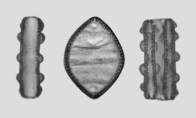 It is difficult to gain a spatial impression from the projections into a plane. This is easier if the diatoms are located by chance in a position that lies between valve view and belt view. Such a situation is found in this image: