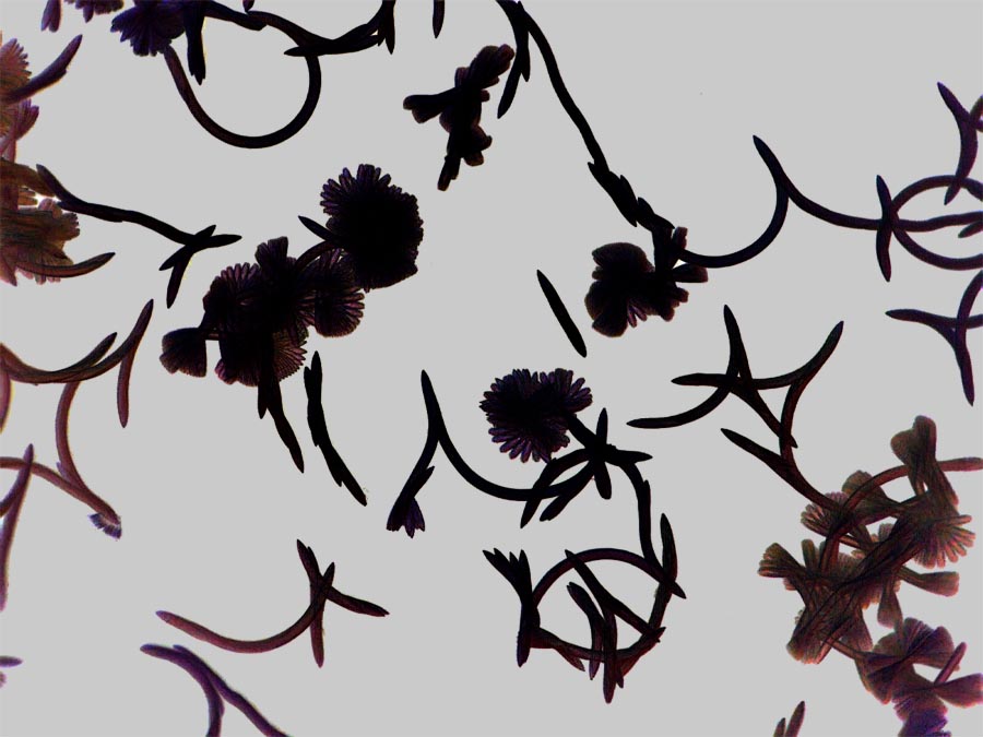 This form of reversal with keeping the turning sense is very common. The picture on the left (click to enlarge) shows a superimposition of the frames of a video of the movement in a culture. In many places you can see the characteristic patterns of this behaviour.