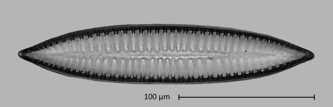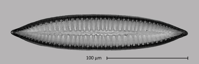 The diatom in valve view. I assign them to the species Surirella biseriata (see https://www.algaebase.org/search/species/detail/?species_id=79965.