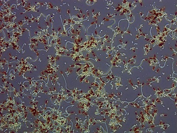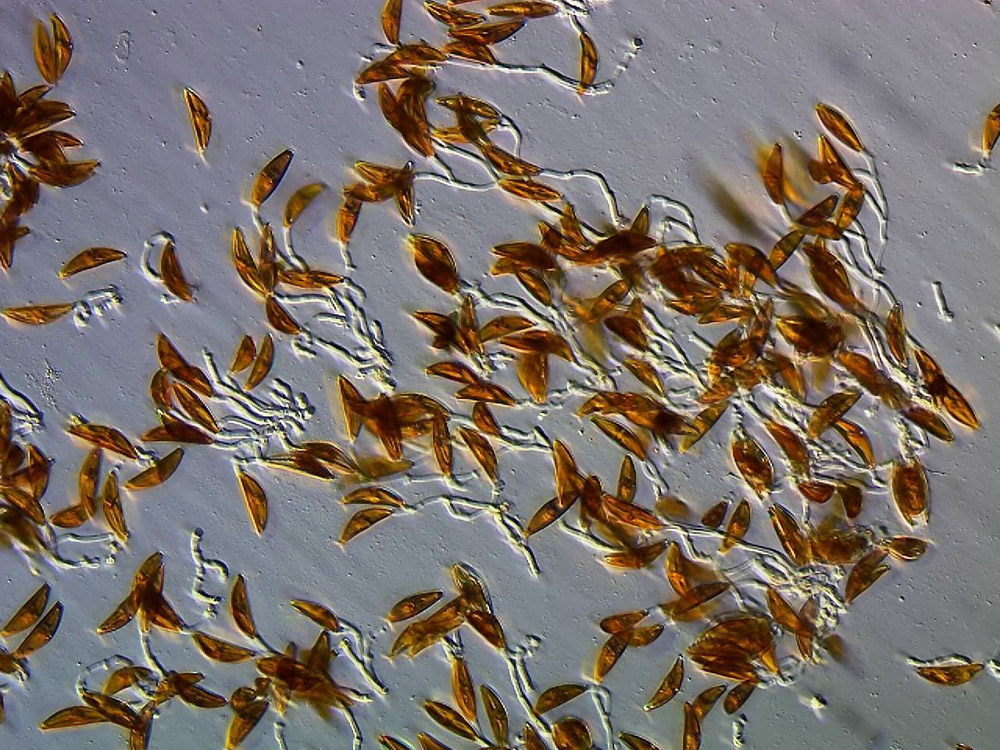 Different environmental conditions can be considered as a reason for the different forms of development in nature. In our cultures, however, the nutrient solution, temperature etc. are almost identical. There are differences in light intensity. It can be assumed that this plays a role in the stability of the tree-like structures, as it has a significant influence on the activity of the raphe. Incidentally, the largest structures were formed in my cultures in the first generations after sexual reproduction. The fast leaving of the jelly stalks could serve the search for a sexual partner in diatoms that are close to their minimal size.