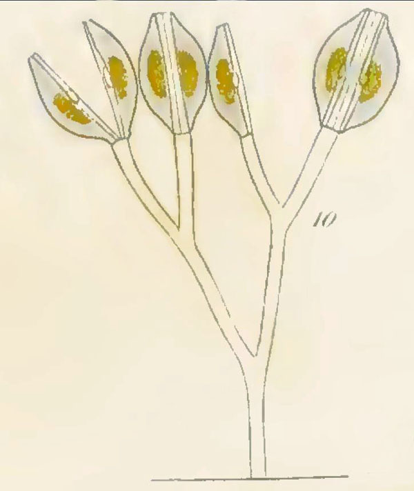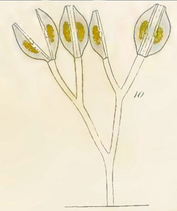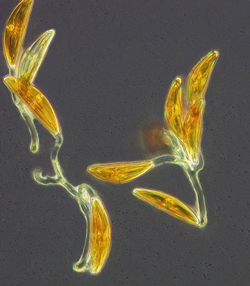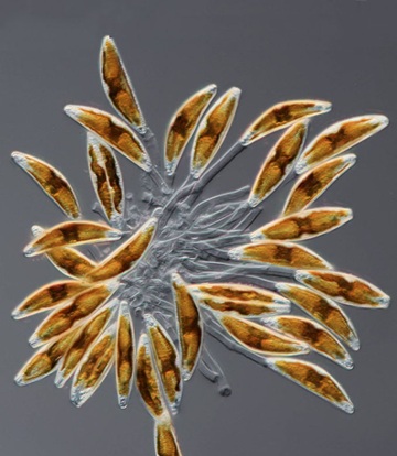 Cymbella cistula colonies on jelly stalks