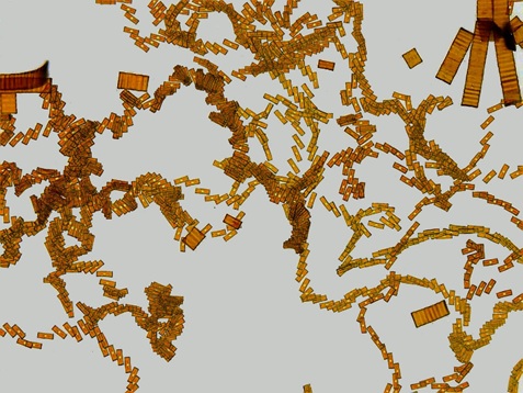 The cultivated Eunotia forms chain-like colonies, which can become very long in vitro. Some pictures can be found on the pages on the size sequence and synchronicityronicity of chain-like colonies. The individual diatoms that have separated from colonies are mobile. Only rarely one observes several connected diatoms in motion. This is why they can probably also be colonised epiphytically. In the first raw culture, besides Eunotia, Cymbella was also present, which colonized Eunotia colonies. Video 3 (4x time lapse) shows the situation.