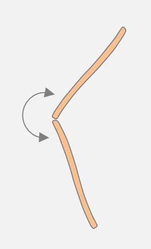 Very frequent are angular changes at connected apices (see drawing on the right). Diatoms that adhere with the apex on a substrate are capable of performing pivoting around the cell pole. It is probably the same mechanism which is observed on the surface of the water.