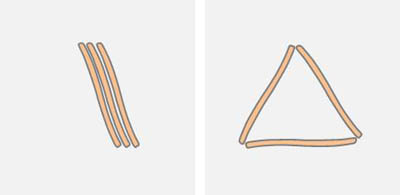 The pattern of the diatoms can be described by undirected graphs. The apices form the nodes. Parallel diatoms represent multiple edges (multigraph). If a diatom touches a second diatom at a point other than its apex, there is no bond. According to the simple model of two hydrophobic particles in the distance of the apices one expects structures with few unconnected nodes (i.e. unbound apices). For example, if three diatoms are within the range of the surface forces, the configurations where all ends have bonds to other diatoms should prevail: