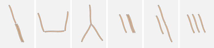 Energetically unfavorable are patterns with free ends, as are shown below: